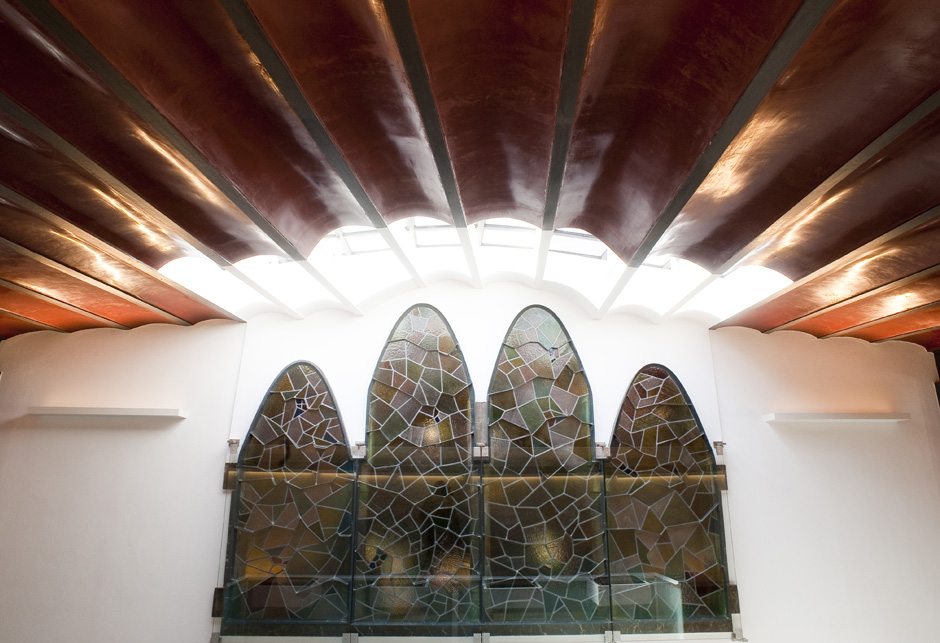 La cambra prèvia a l’entrada del saló central, anomenada sala dels passos perduts, és un dels espais on es fa més palès que Gaudí va haver de recórrer a la imaginació per augmentar una superfície insuficient. La solució la va trobar creant una façana dividida en tres plans. Un altra zona remarcable de l’edifici és la sala dels fumadors o de descans, on hi destaca la seva tribuna bombada i volada sobre el pati del migdia.